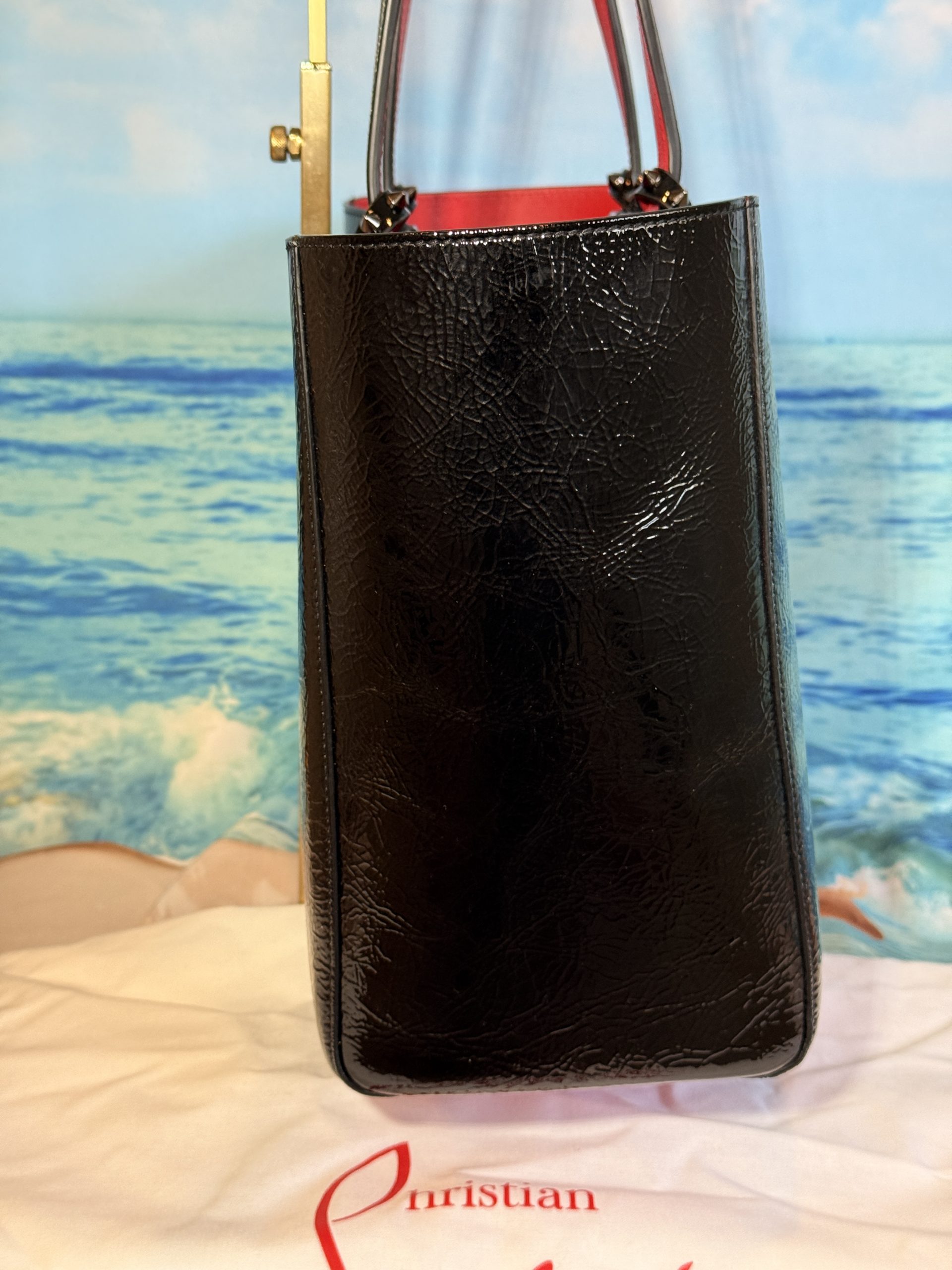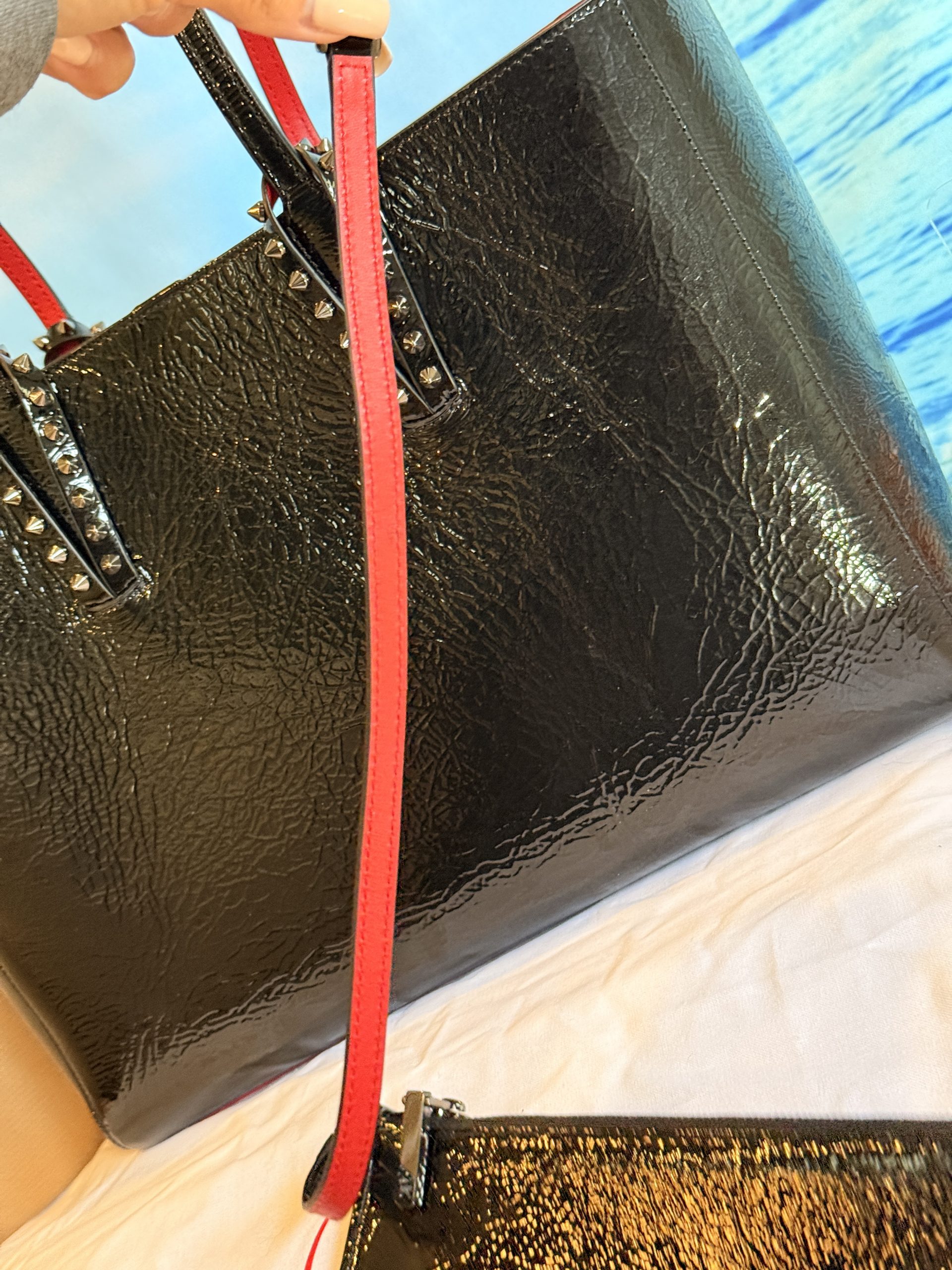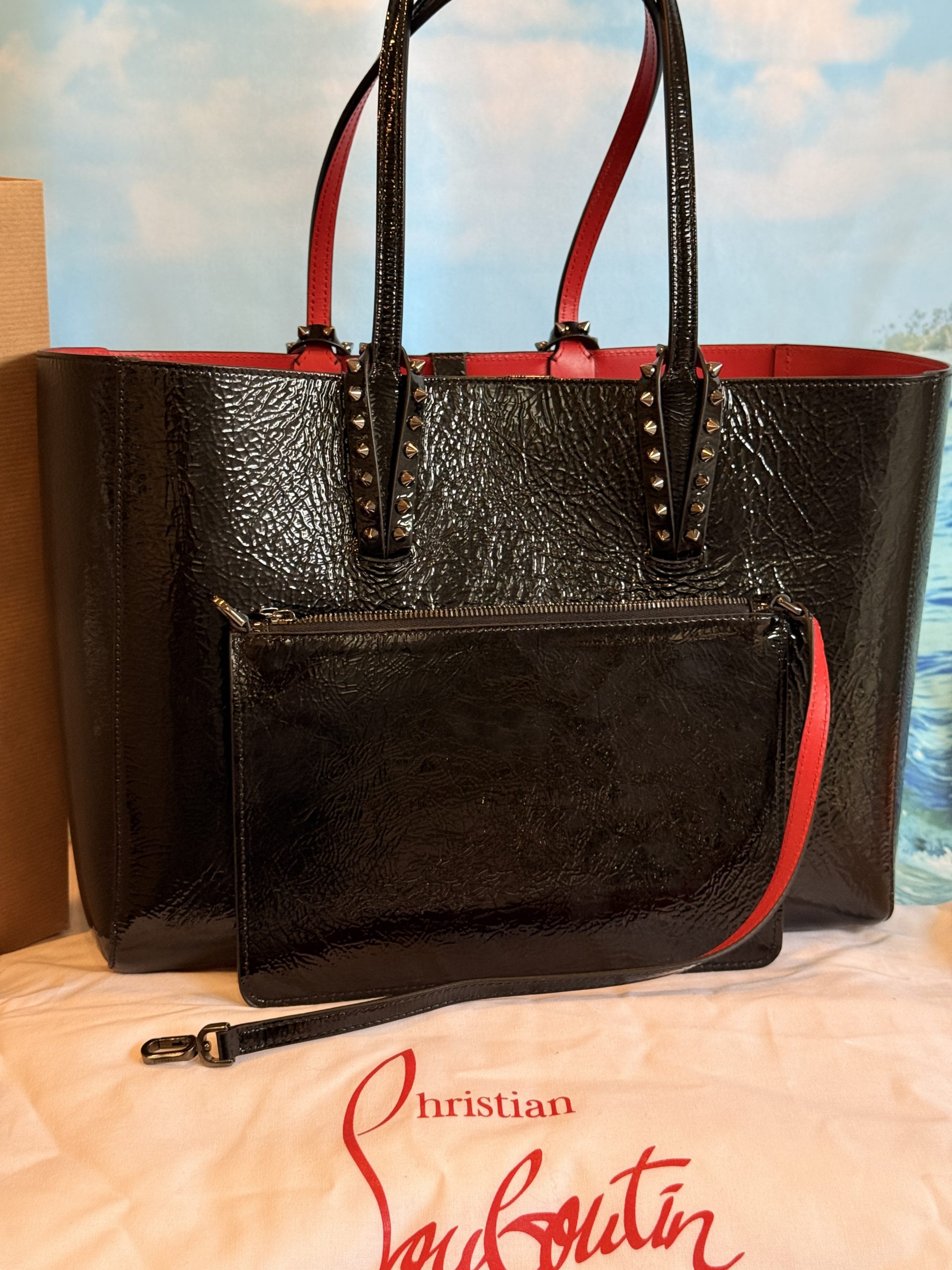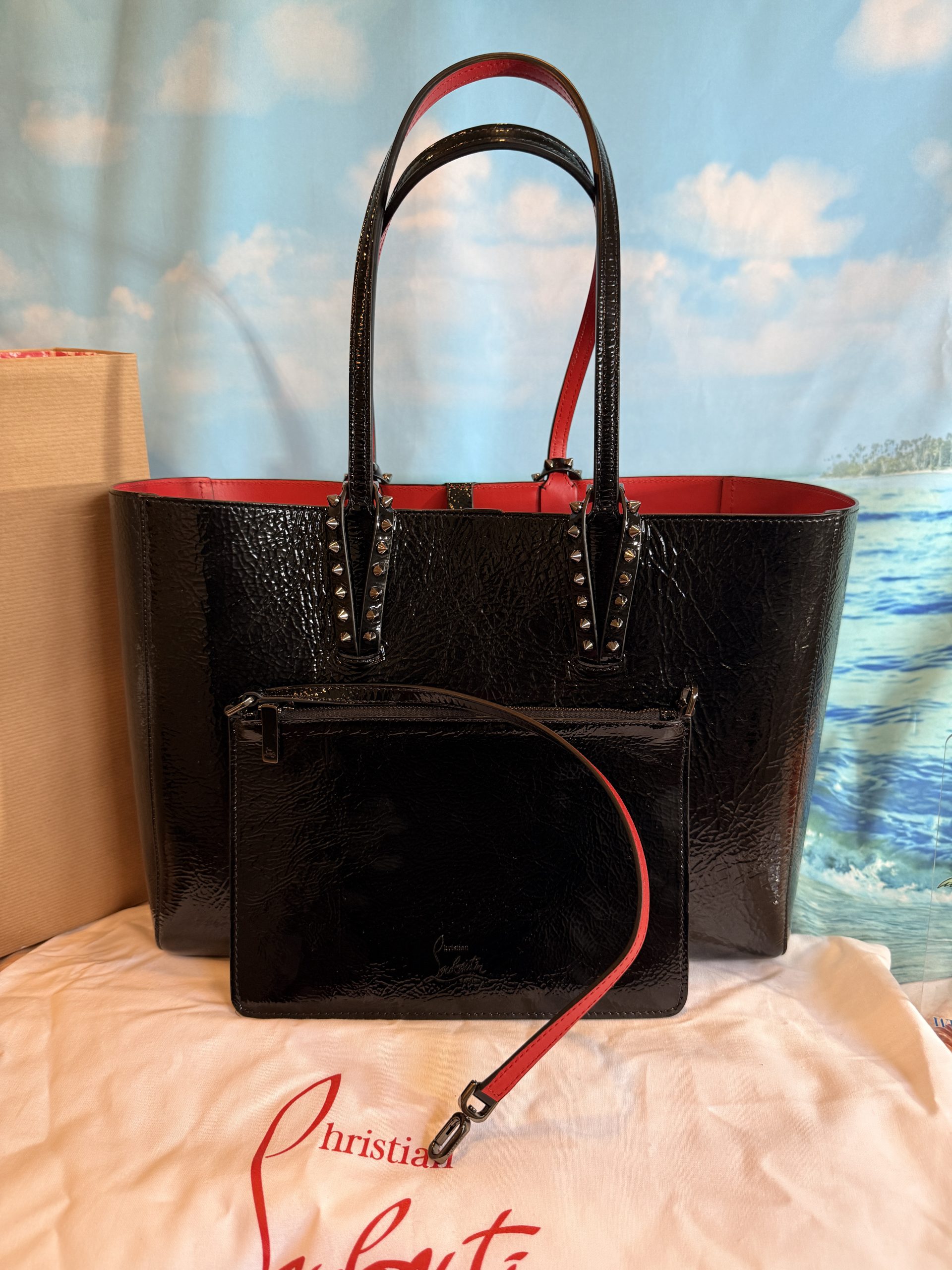 Christian Louboutin Cabata Soft Crinkle Patent Leather Tote with Wristlet & Bag Charm NWT