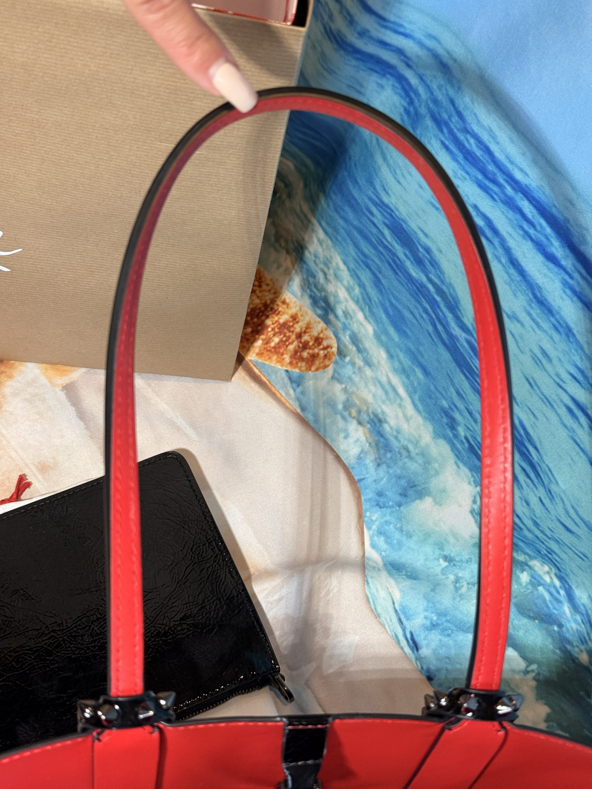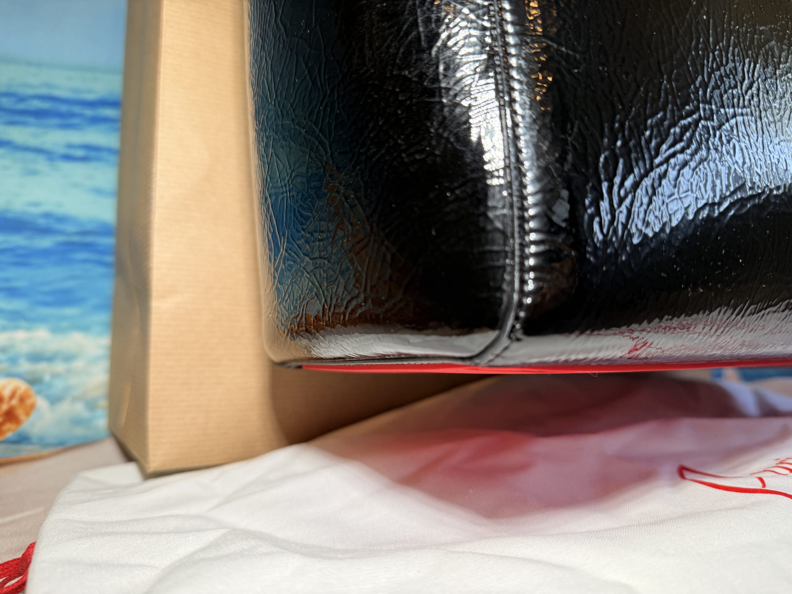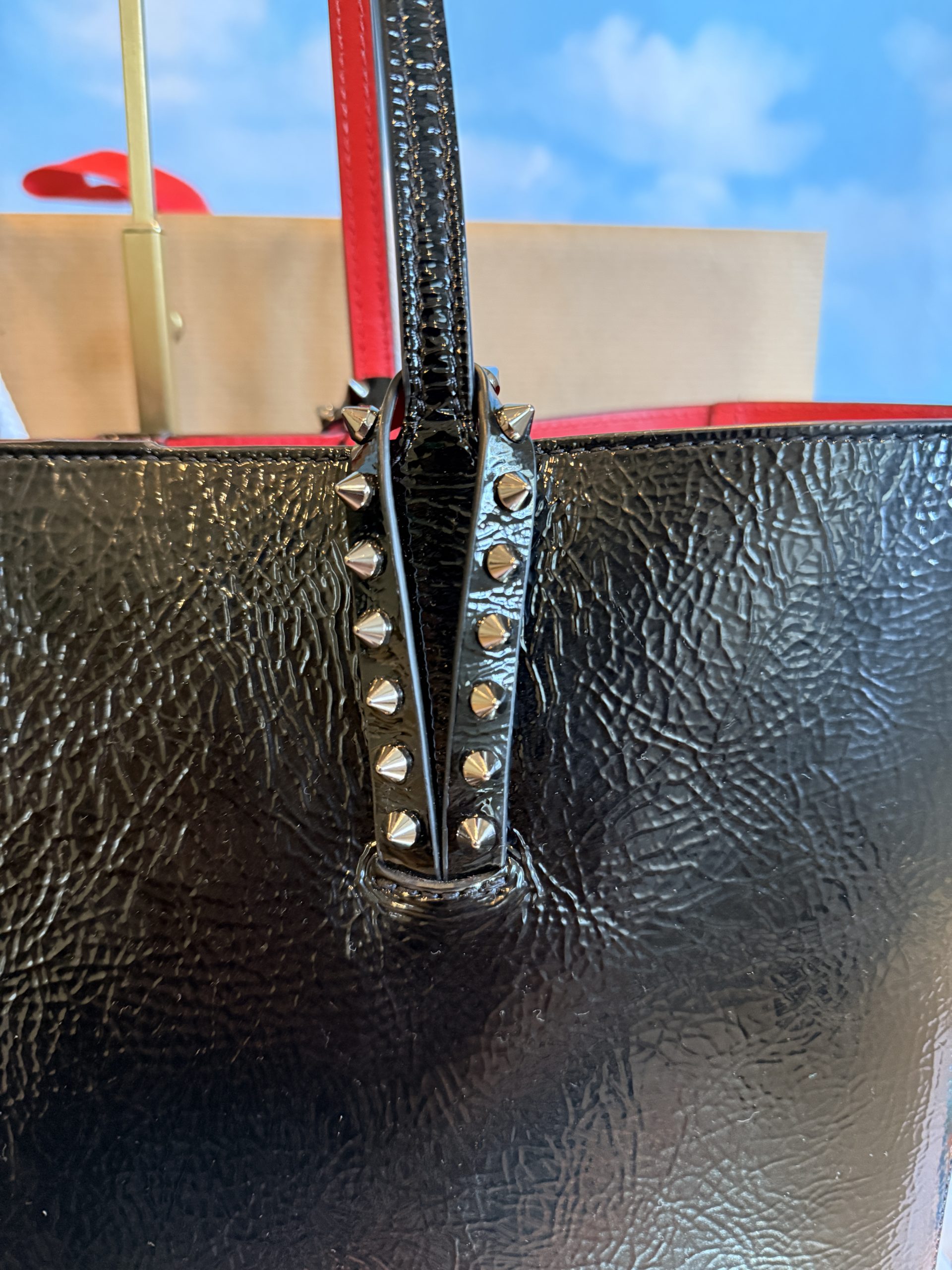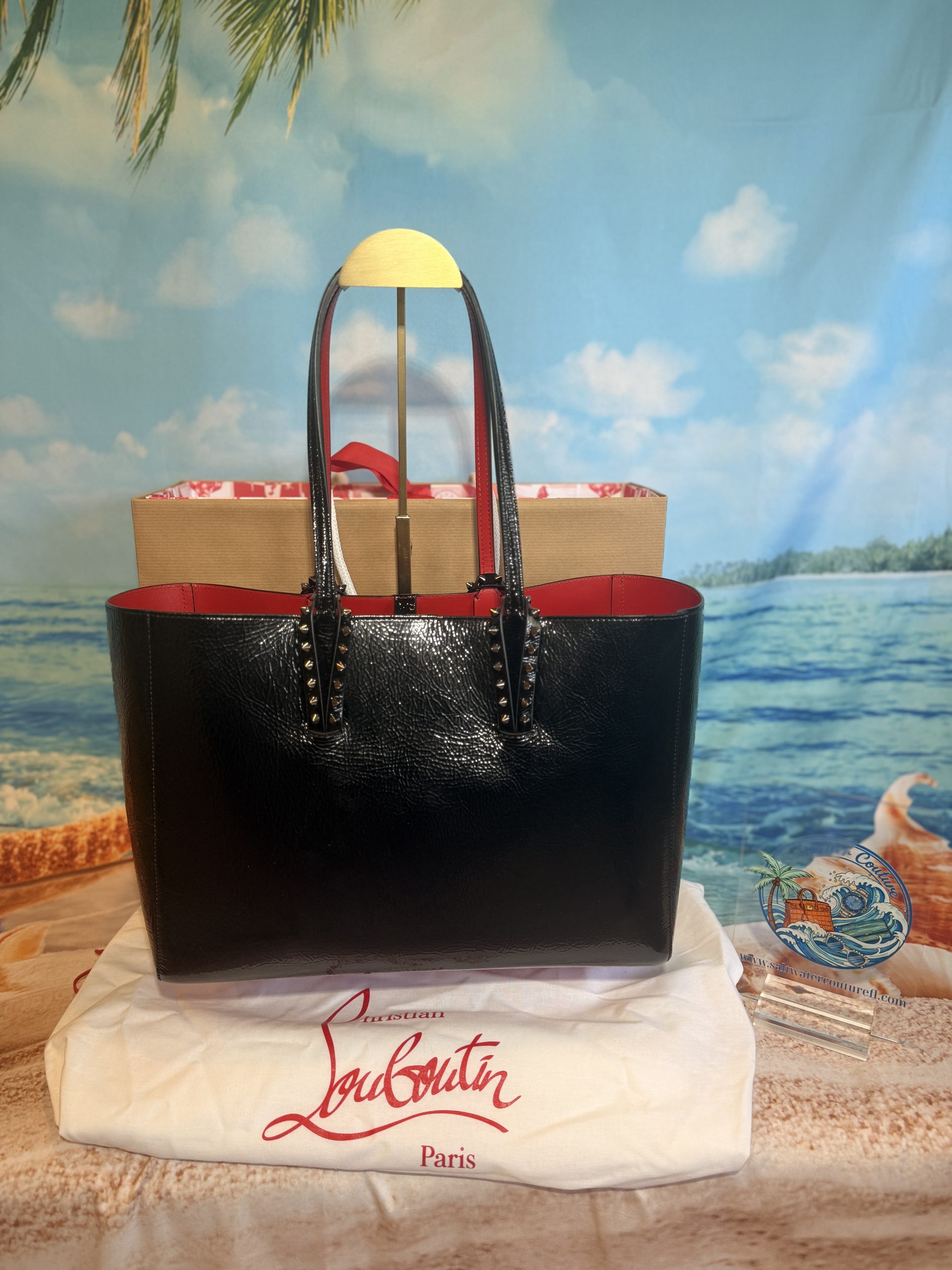 Christian Louboutin Cabata Soft Crinkle Patent Leather Tote with Wristlet & Bag Charm NWT